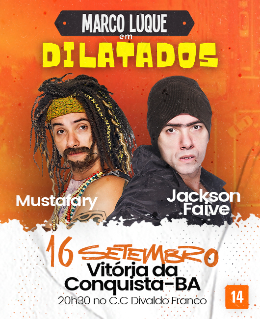 O novo espetáculo de Marco Luque, “Dilatados” (com criação e direção de Luque e Guilherme Rocha) é promessa de boas risadas para os fãs e admiradores do trabalho deste artista; aqui ele se apresenta só, mas muito bem acompanhado de personagens queridos pelo público: Jackson Faive, e Mustafary – cujo vídeo com o cão serumaninho teve milhões de visualizações na internet.