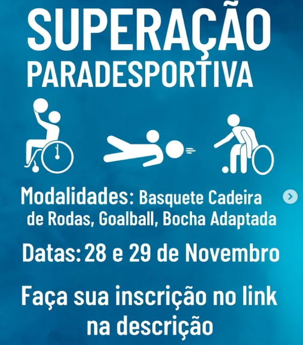Estão abertas as inscrições para o Festival de Paradesporto, um evento de dois dias dedicado à integração, ao aprendizado e à prática de modalidades esportivas adaptadas. O Festival, que acontecerá nos dias 28 e 29 (sem menção do mês, sugerir inserção na publicação final), contará com uma programação especial que inclui a experimentação de goalball, basquete em cadeira de rodas e bocha adaptada, além de um importante debate sobre inclusão.