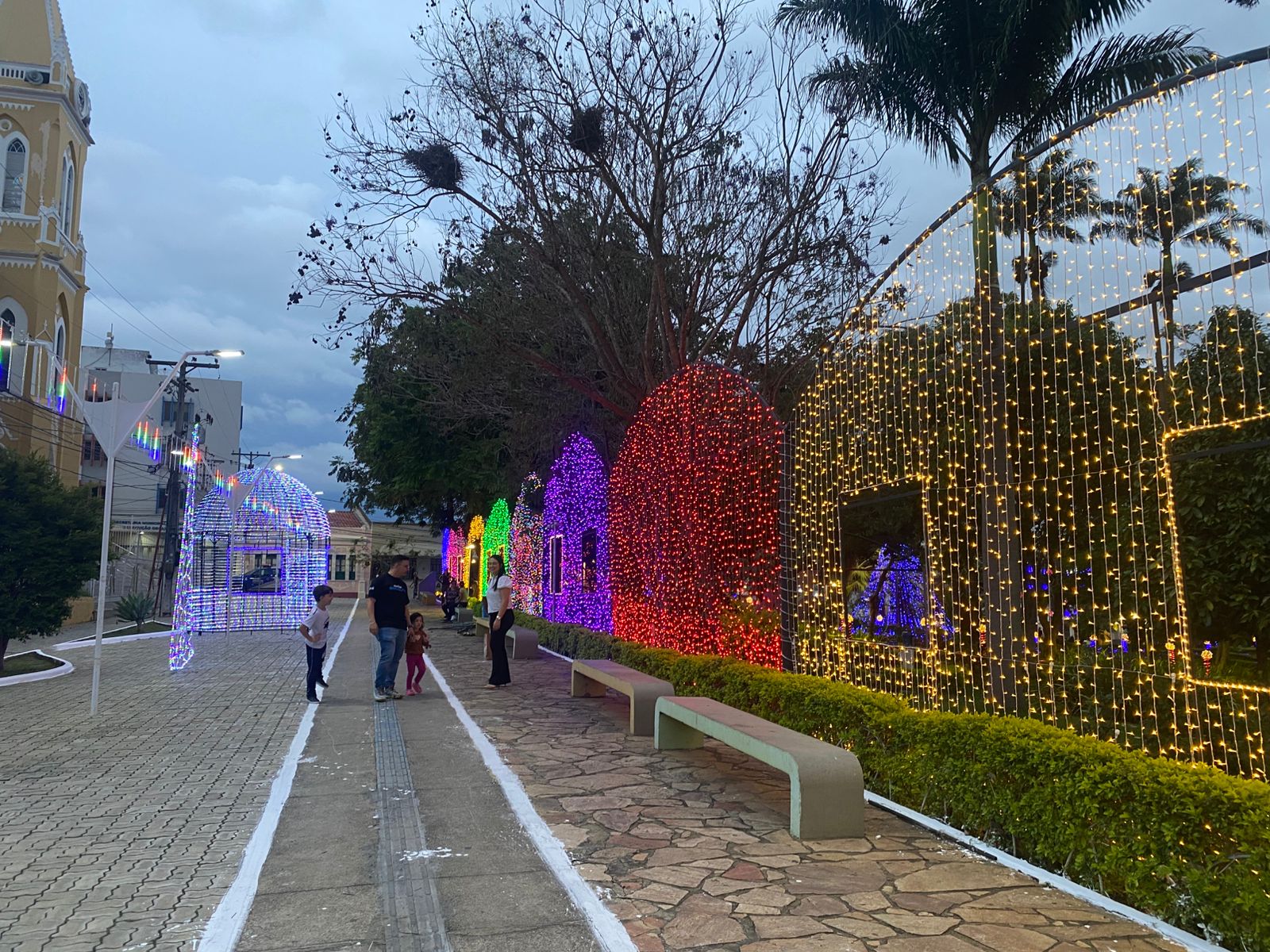 A programação de abertura inclui apresentações culturais do Terno de Reis “Março São Sebastião Estrela Dalva” e uma participação do Coral da Igreja de Jesus Cristo dos Santos dos Últimos Dias. A estrutura decorativa instalada na praça dispõe de um presépio com temática nordestina, duas árvores de LED de três metros posicionadas nos lagos, um pergolado de meteoros, uma cúpula interativa e totens iluminados no entorno do local.