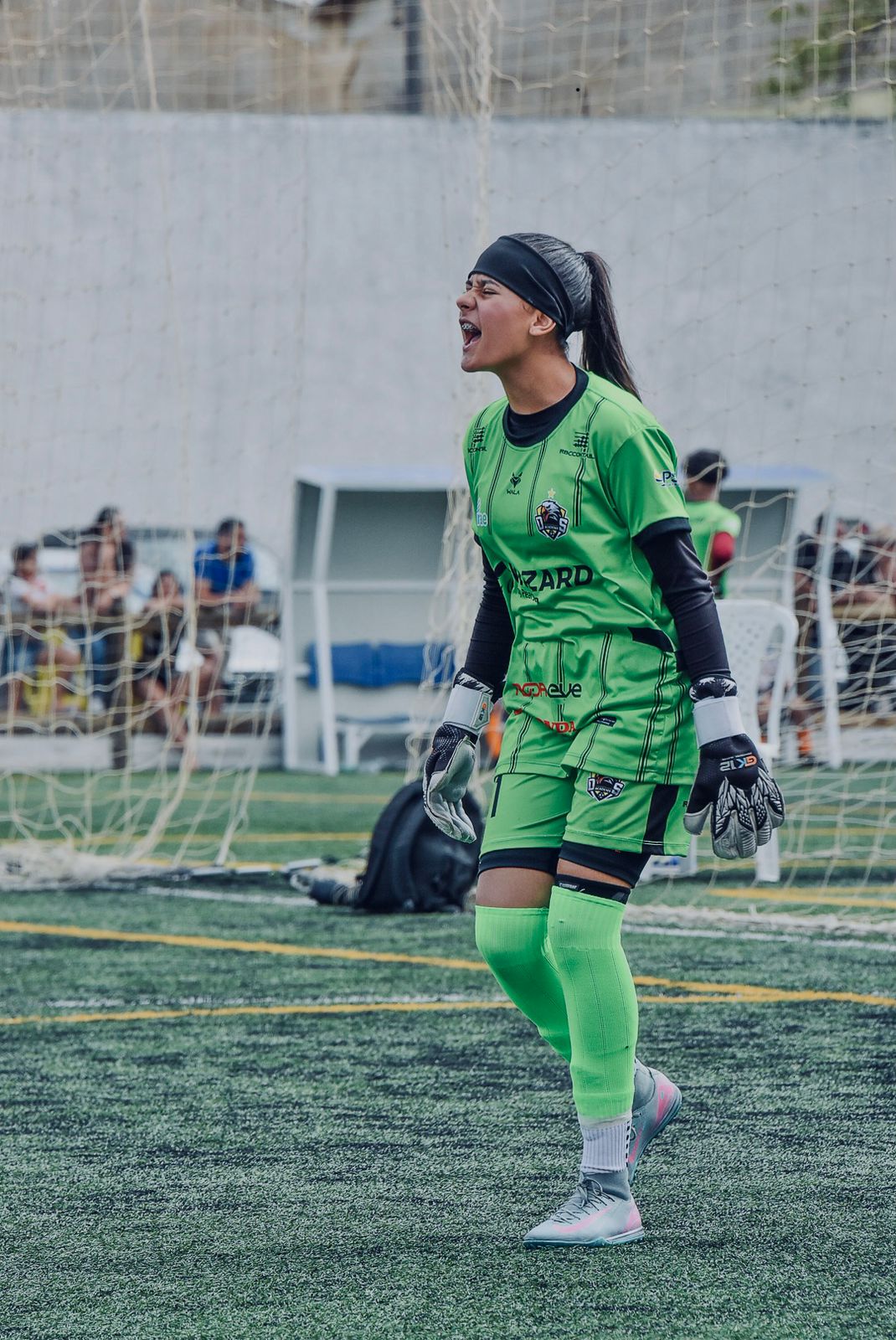 A história de Anna Júlia com a bola nasceu como brincadeira. Foi nas quadras de um condomínio, onde passava grande parte do tempo com a avó, que ela começou a jogar futsal ao lado de meninos mais velhos. Sem pretensão profissional, encontrei no gol o seu lugar quase por acaso. “Na linha eu era muito ruim, então fui para o gol”, relembra. O que parecia improviso logo se transformou em vocação.
