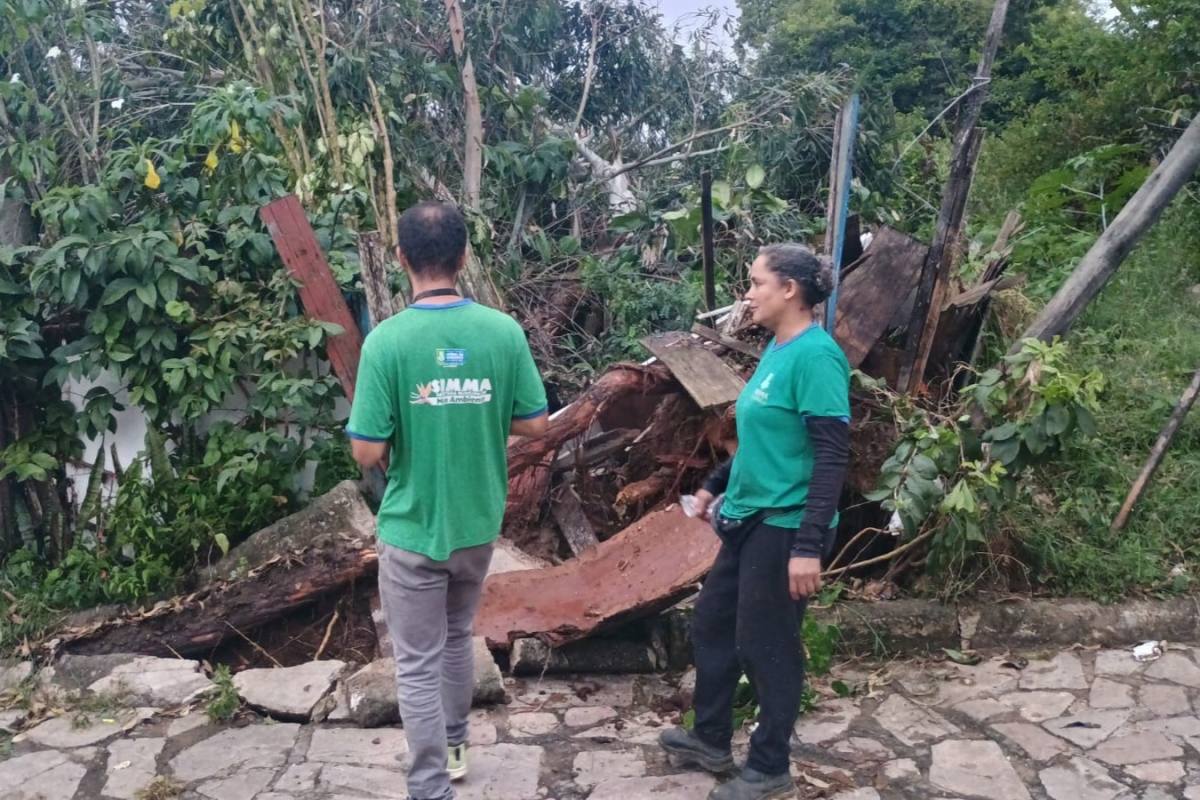 A força da ventania causou o tombamento de árvores e galhos, exigindo uma operação integrada da Secretaria Municipal do Meio Ambiente (Semma) e da Secretaria Municipal de Mobilidade Urbana (Semob), por meio do Simtrans.
