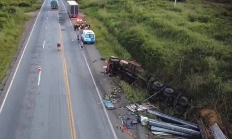 Caminhoneiro morre após carreta tombar na BR-116 no sudoeste da Bahia