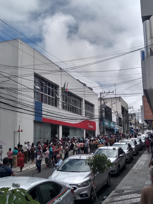 Quem passava em frente a agência se surpreendia com a extensão da fila pela calçada que era de dezenas de metros e contava com diversos idosos em busca do seu pagamento.
