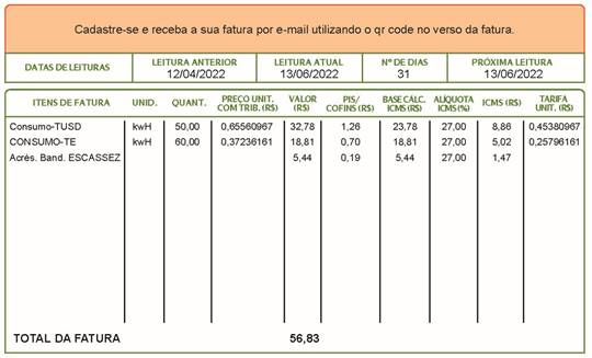 Foto: Divulgação/ Figura 1 Exemplo de nova fatura de energia, em detalhe