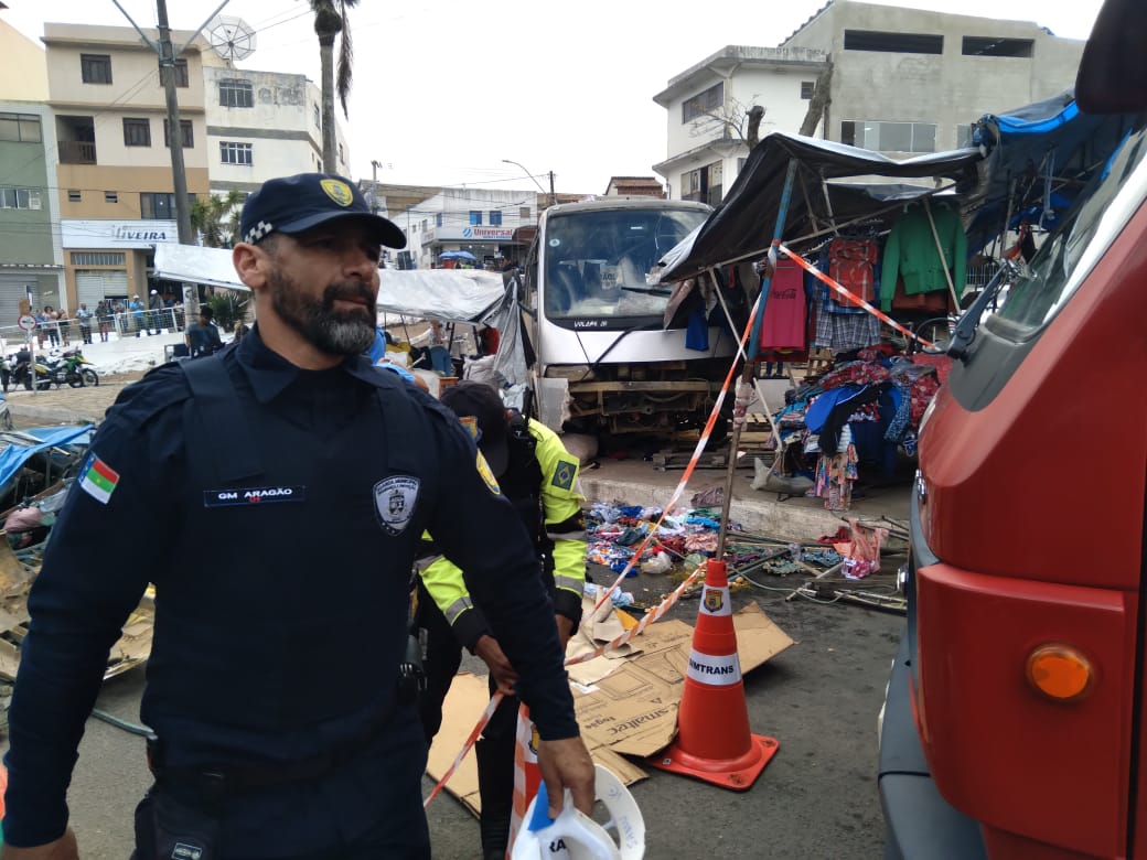 Um micro-ônibus invadiu, na manhã desta quarta-feira (9), algumas barracas que ficam montadas em frente à Ceasa Edmundo Flores, no Centro de Vitória da Conquista.