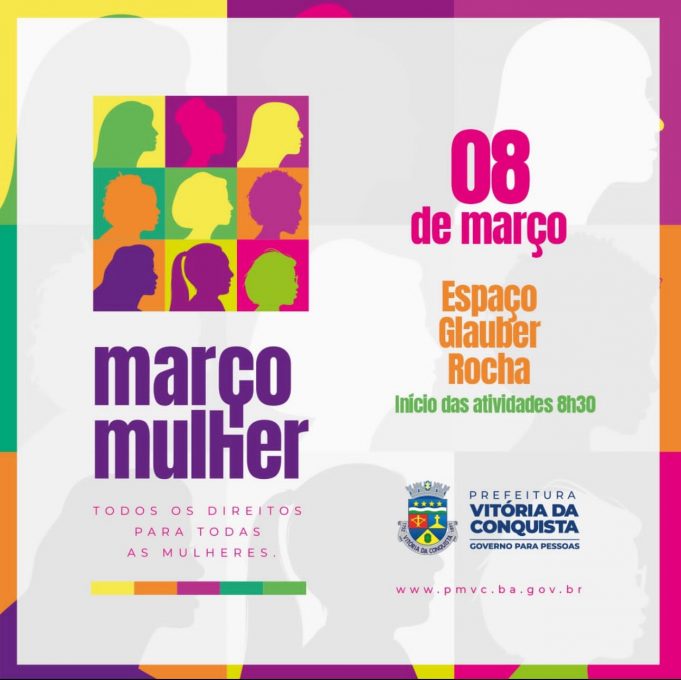Em homenagem ao Dia da Mulher, que acontece em 8 de março (nesta sexta-feira), a Prefeitura Municipal de Vitória da Conquista fará um evento a partir das 8h30, no Espaço Glauber Rocha, dedicado ao público feminino do município. O festejo, que em 2024 tem como tema “Todos os direitos para todas as mulheres”, irá contar com atividades e apresentações culturais.