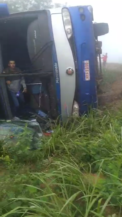 O acidente aconteceu ainda bem cedo, enquanto havia muita cerração na pista, de acordo com imagens que circularam nas redes sociais. O ônibus tombou para fora da pista. Segundo a TV Sudoeste, das nove pessoas feridas, sete são adultas e duas são crianças. Elas tiveram ferimentos de leve a moderado. Todos os feridos foram levados para hospitais de Vitória da Conquista.