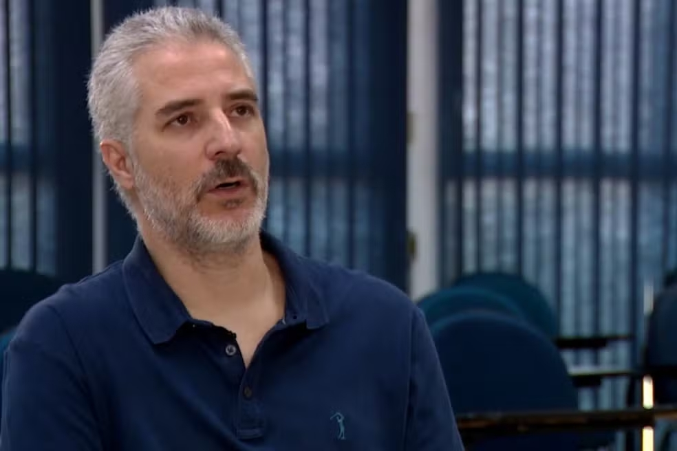 #paratodosverem: O professor da Unicamp, Régis Silva, visto de frente. Ele é branco de cabelos e barba grisalhos. Usa camiseta polo azul marinho — Foto: Jefferson Souza/EPTV